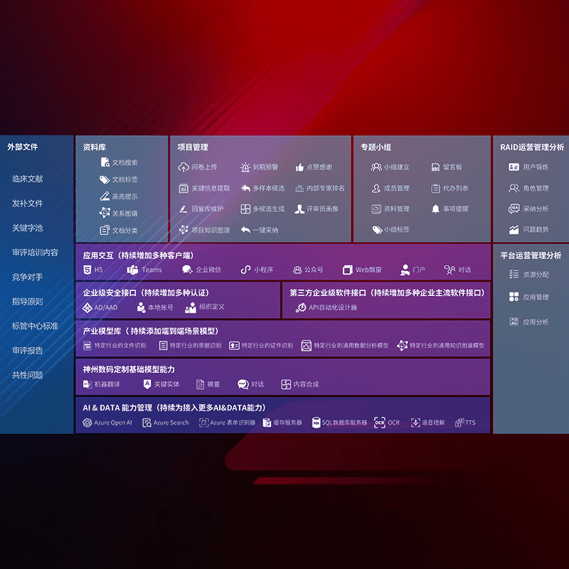 医疗器械产品上市前,,,要熟悉严格与繁复评审标准,,整理分析监管机构指导文件中的海量信息。。。企业急需一个智能化解决方案,,,,提升知识管理效率,,,,提高评审通过率,,,,以提升其市场竞争力。。。